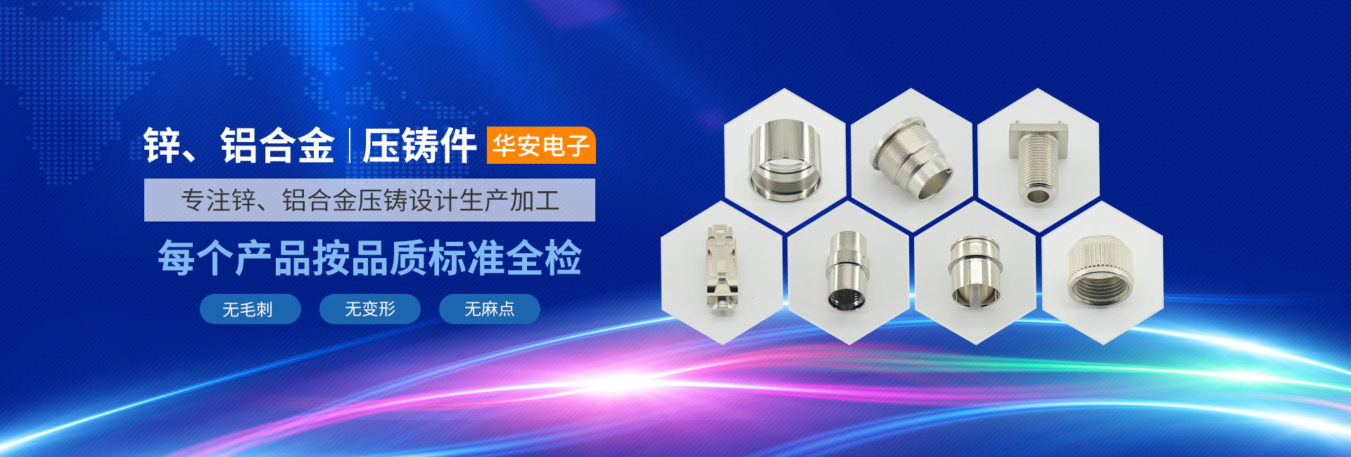 丹陽(yáng)市華安電子科技有限公司成立于2018年,專業(yè)研發(fā)、生產(chǎn)、銷售精密合金壓鑄模具及各種鋅合金/鋁合金壓鑄件,壓鑄產(chǎn)品主要應(yīng)用于各種射頻連接器外殼、光纖連接器外殼,電腦周邊網(wǎng)絡(luò)連接器外殼,新能源汽車、工業(yè)連接器外殼及各種新能源領(lǐng)域的精密五金件;模具加工制造、精密CNC加工、電鍍烤漆、自動(dòng)化及組裝等一體式服務(wù)。
